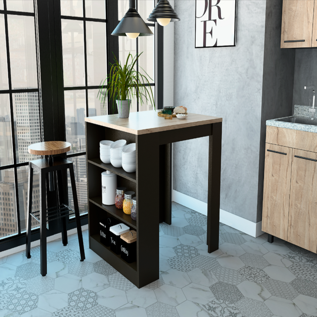 This kitchen island is perfect for small kitchens or areas where space is limited. It can be used as a dining area, a workspace, or for storing kitchenware and decor items.