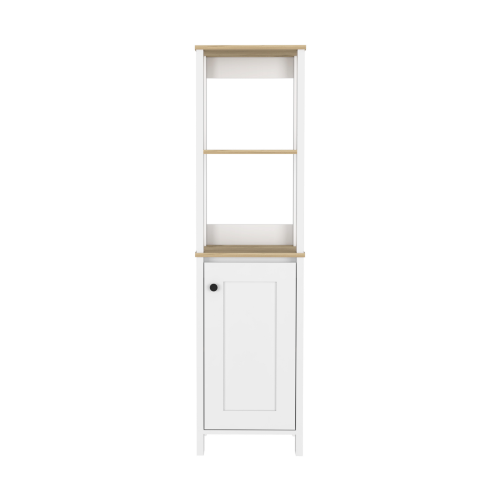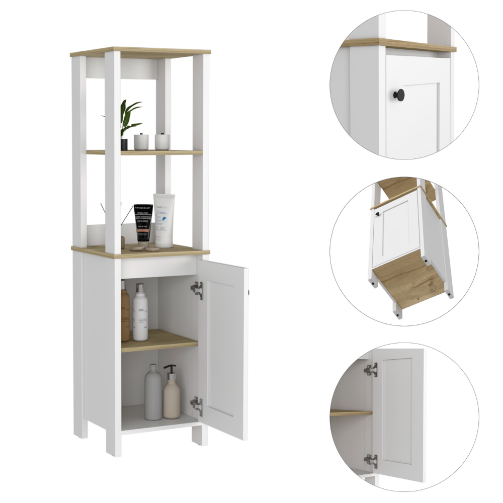 - Number of Shelves: Four (two external open shelves and two interior shelves)