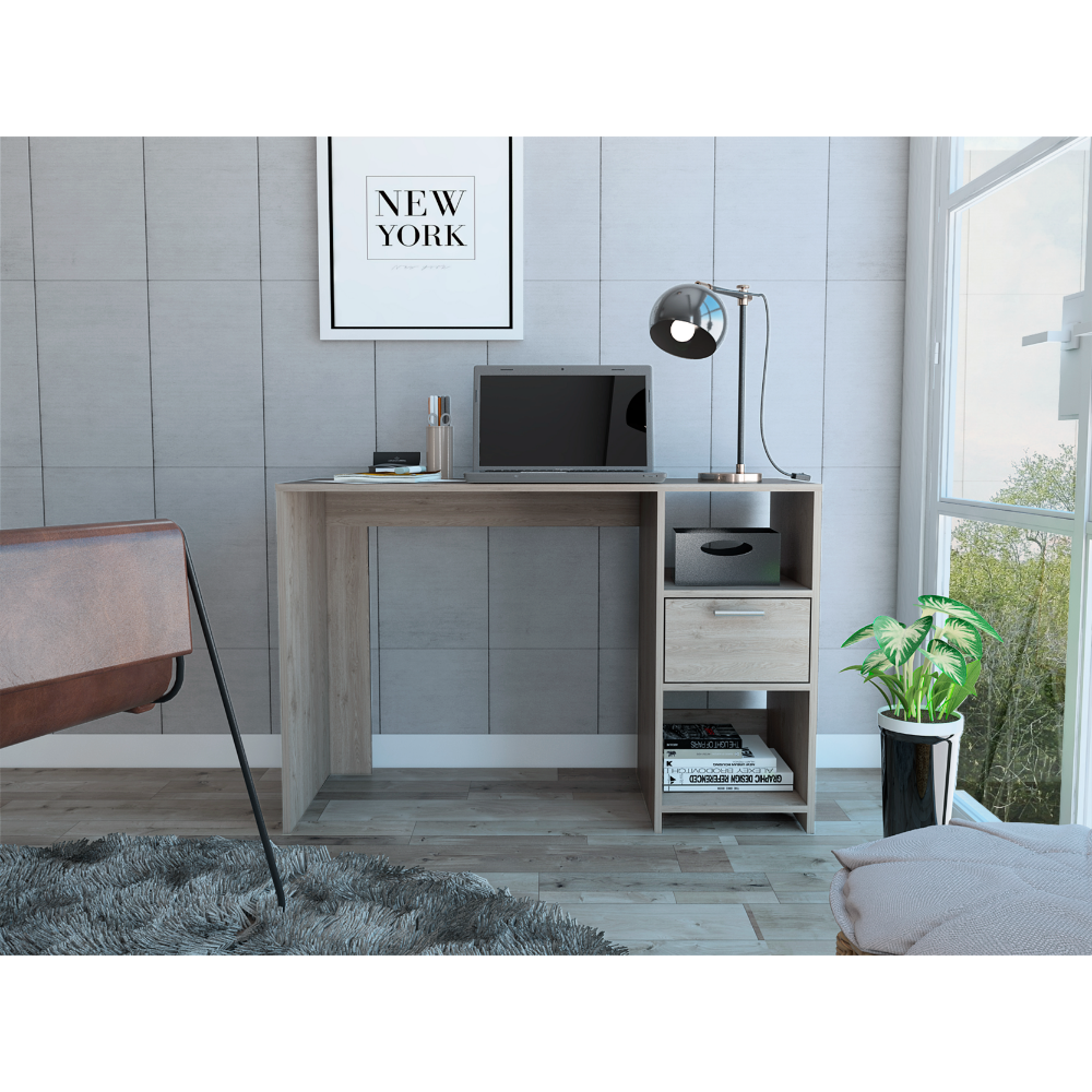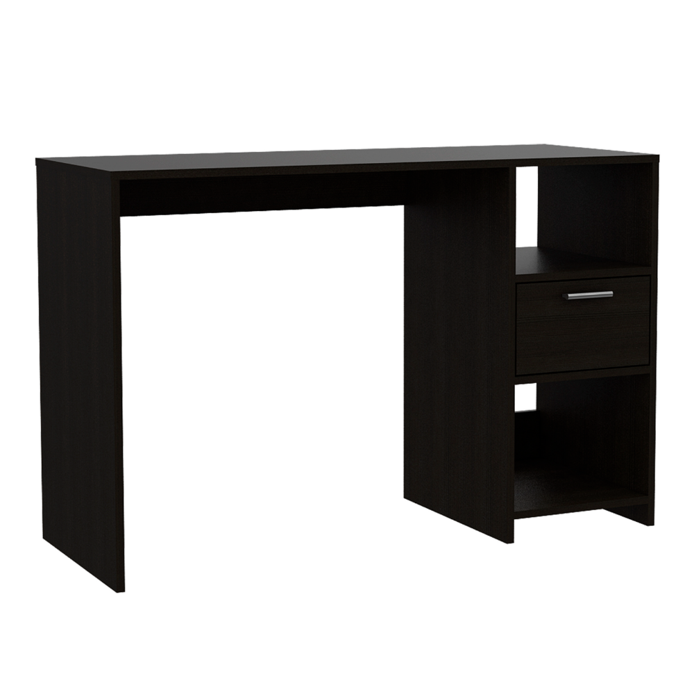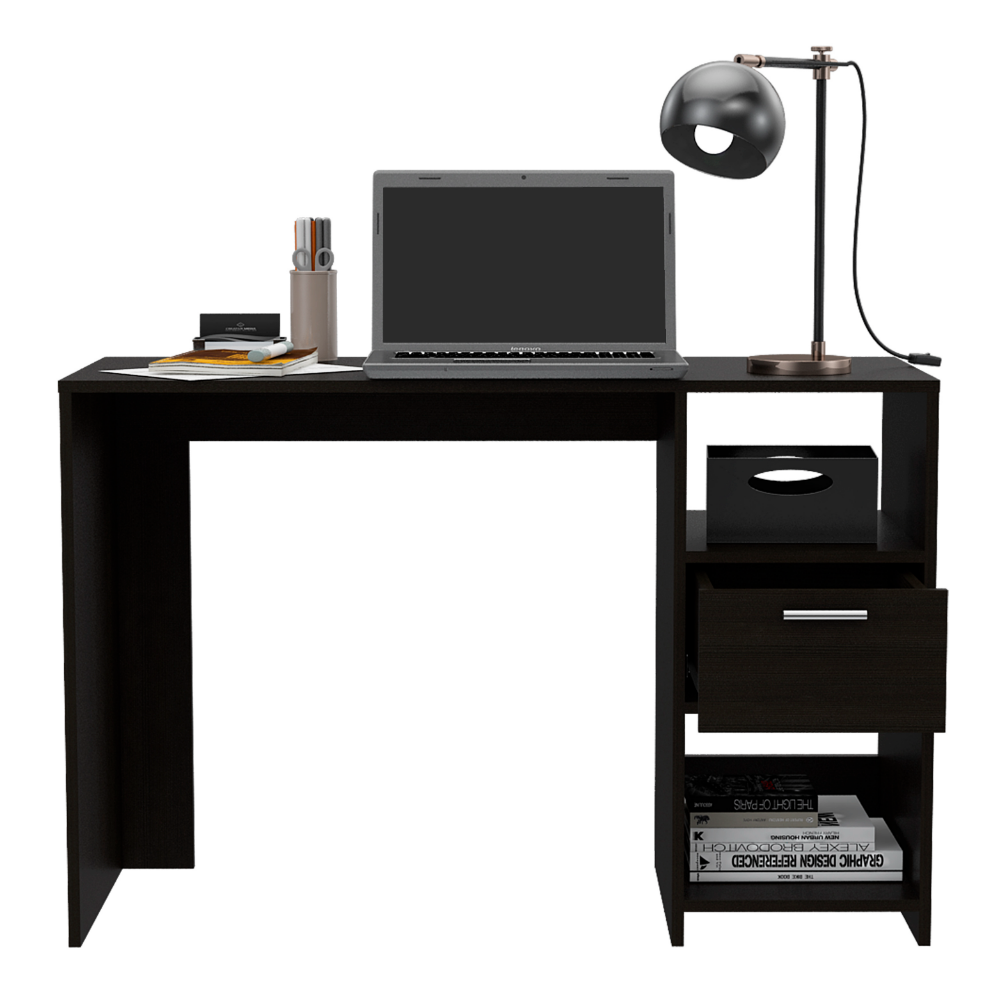 This writing computer desk offers an elegant and luxurious style. With its open shelves and drawer, it provides ample storage for office essentials. The large surface area can accommodate various work accessories, making it ideal for work and study.