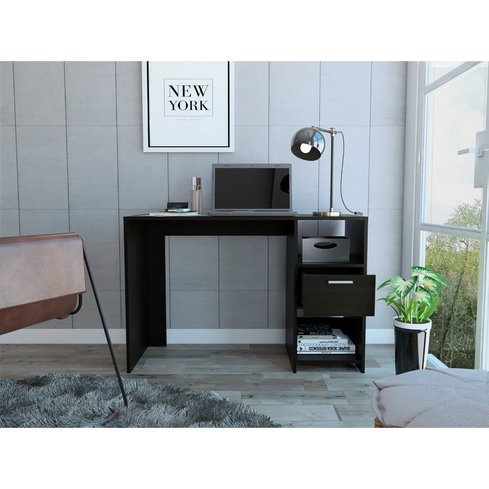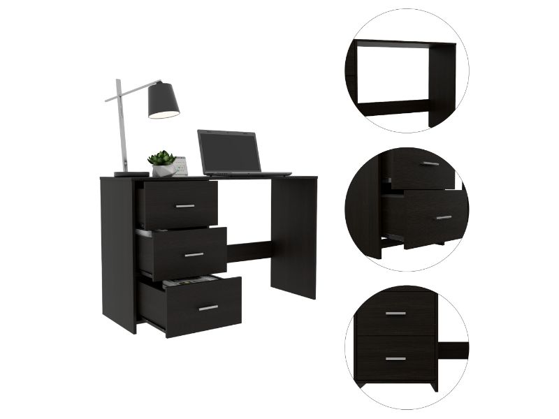 This desk is perfect for home offices, small workspaces, or bedrooms where space is limited. It’s great for organizing office supplies and providing a comfortable working area.