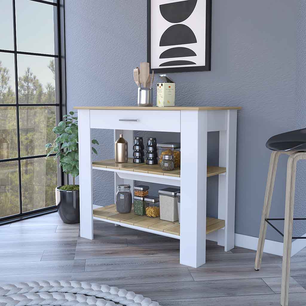 Enhance your kitchen’s functionality and organization with this modern kitchen island. It offers ample storage space and a convenient workspace, making it a valuable addition to any kitchen.