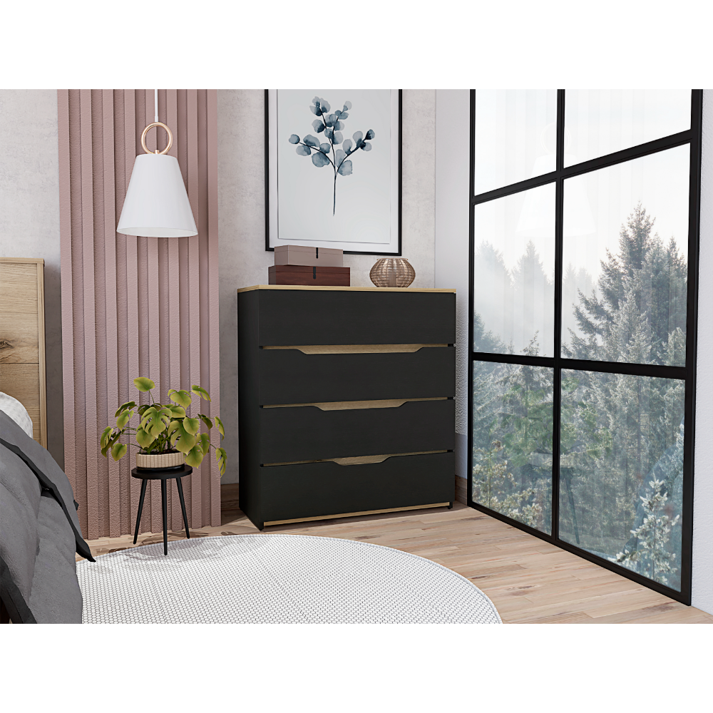 This dresser is a harmonious blend of rustic and contemporary styles. It offers both style and functionality, perfect for organizing clothes and accessories while adding a touch of class to any room.