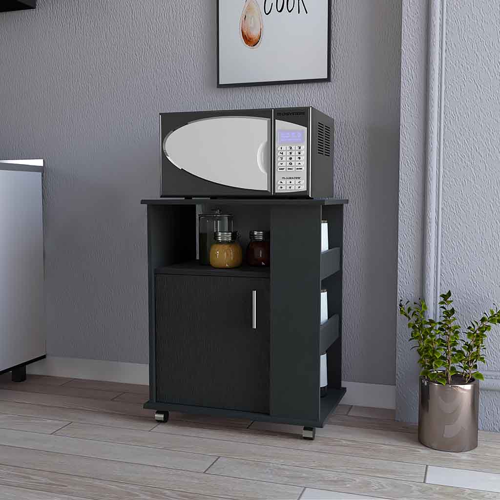 This microwave cabinet is a perfect addition to any kitchen. It offers ample storage space and a stylish design, adding elegance and luxury to your kitchen. The cabinet’s mobility allows you to place it wherever you need it.