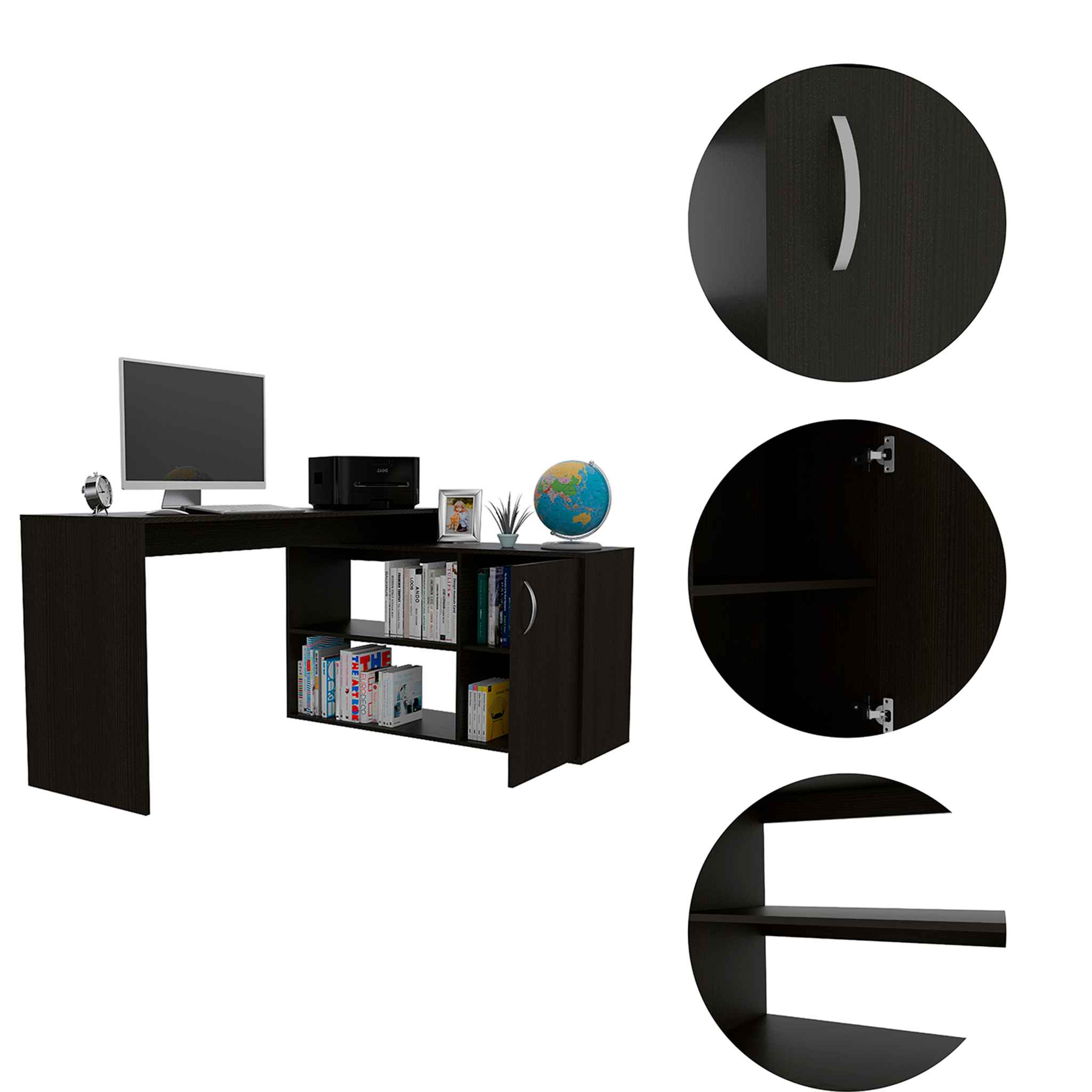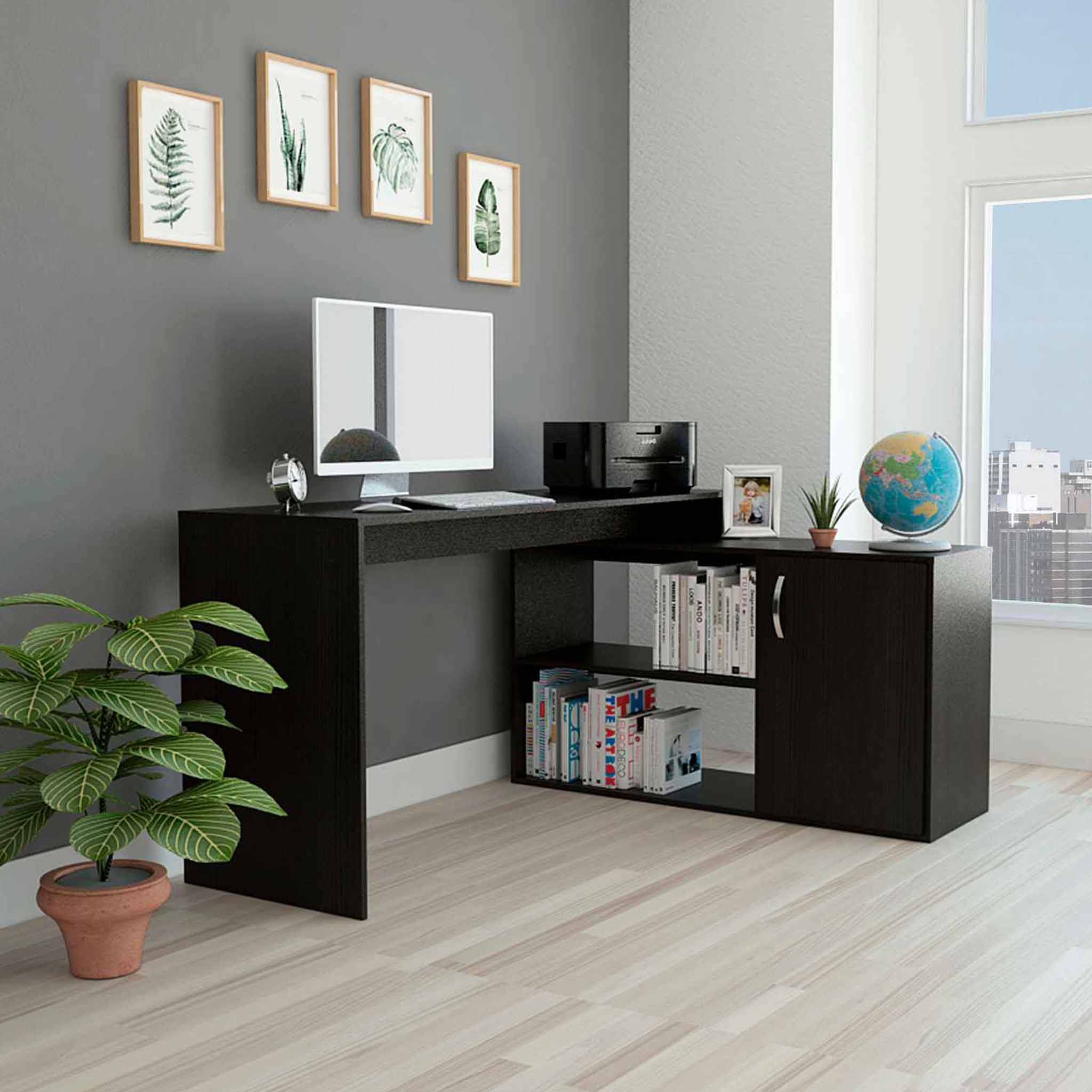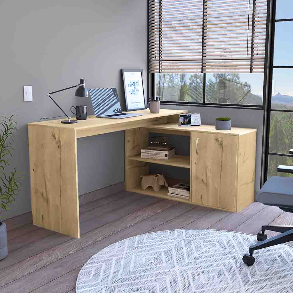 This desk is ideal for home offices, small workspaces, or corner setups. It’s perfect for individuals who need a functional and stylish desk to organize their work and keep their essentials within reach.