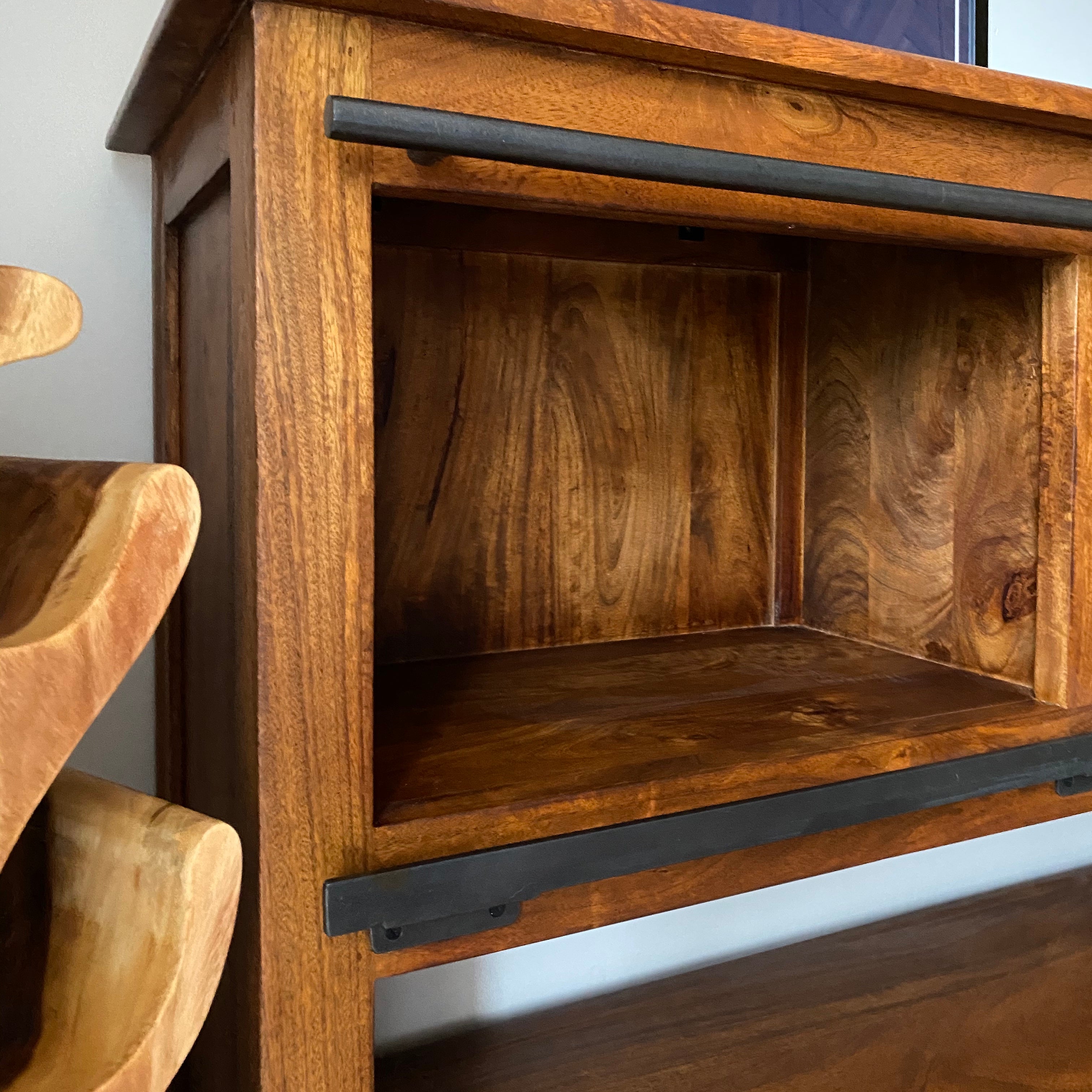 Living rooms, entryways, or dining areas. Ideal for holding media equipment, storing small items like keys and mail, and displaying decorative objects. It complements rustic, industrial, or mid – century modern interiors.