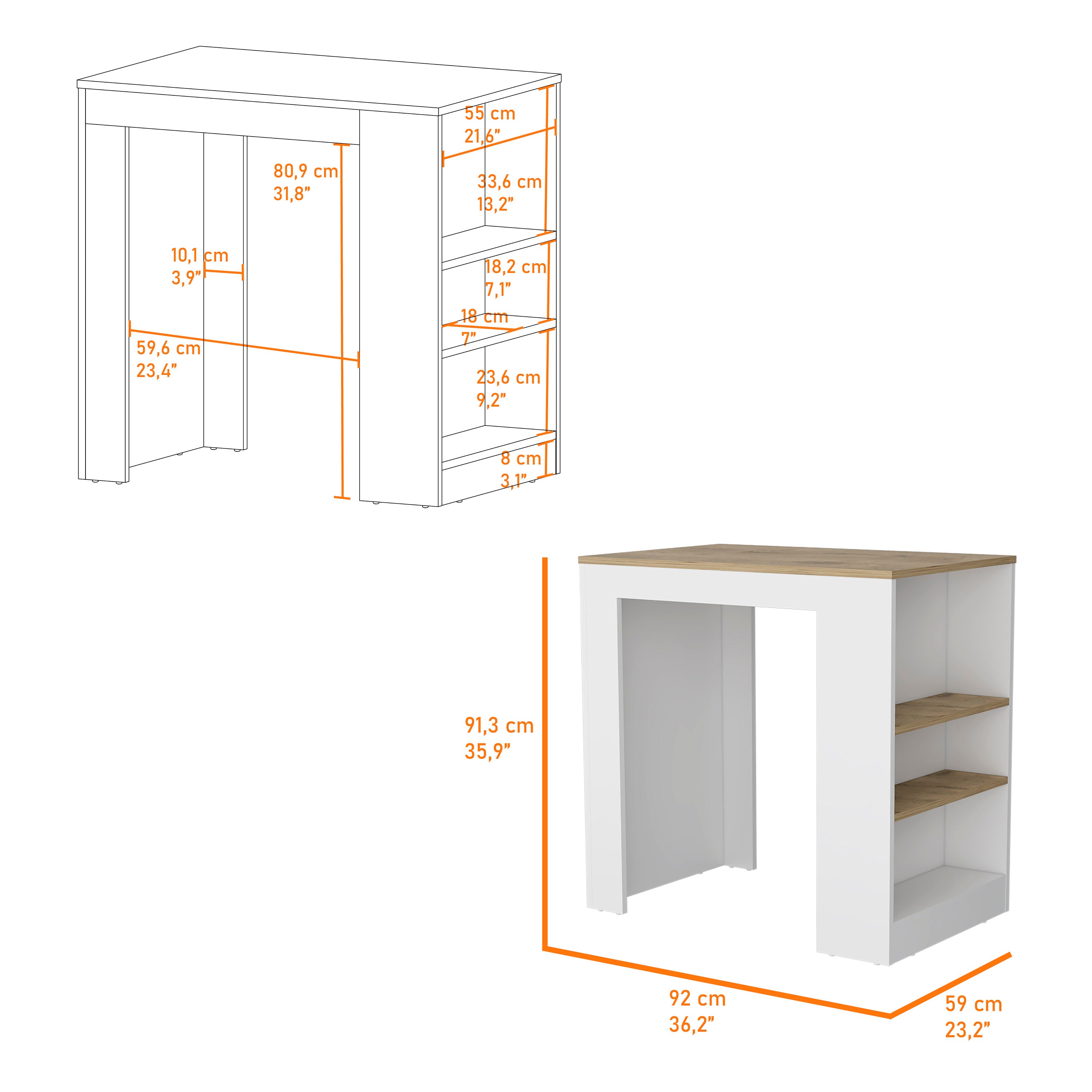 This kitchen island is a stylish and practical addition to any kitchen. It offers a functional workspace and ample storage, making it perfect for meal preparation and keeping kitchen essentials organized. Its modern design adds a touch of elegance to the kitchen environment.