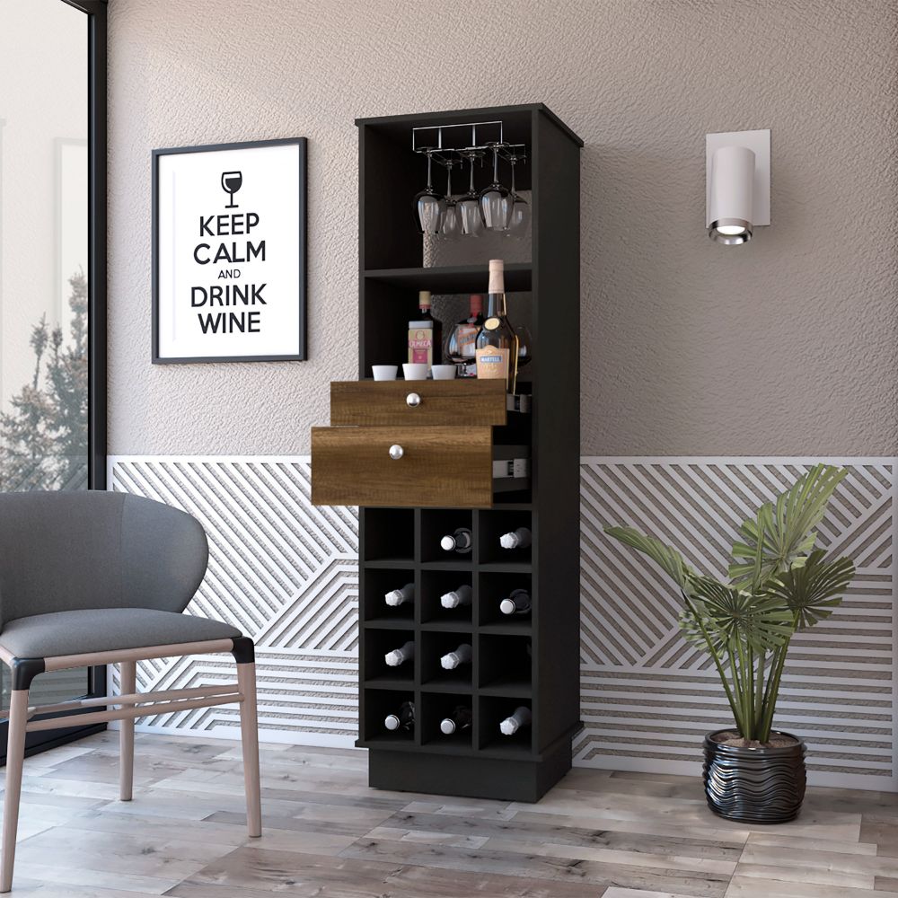 - Two Drawers: With round metallic knobs and metal slides for smooth opening and closing, for storing small bar items