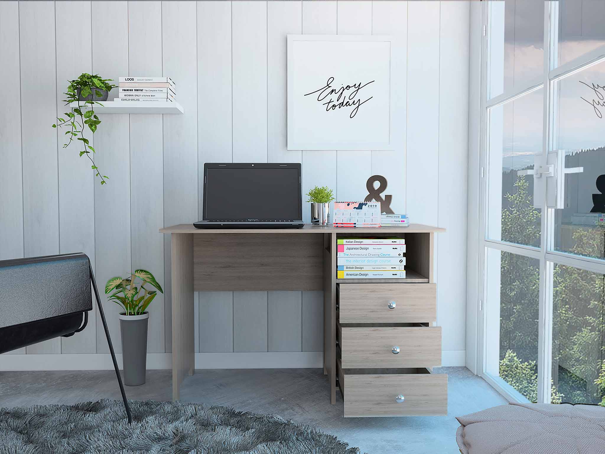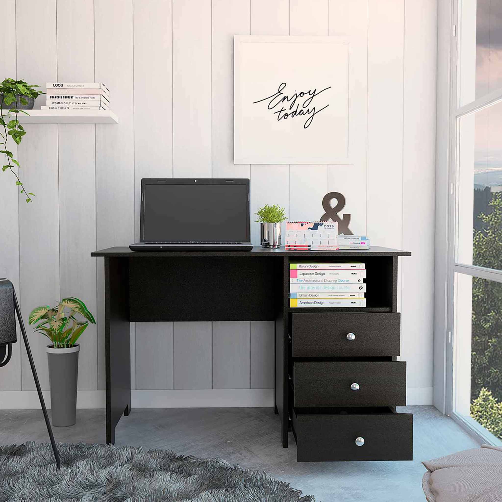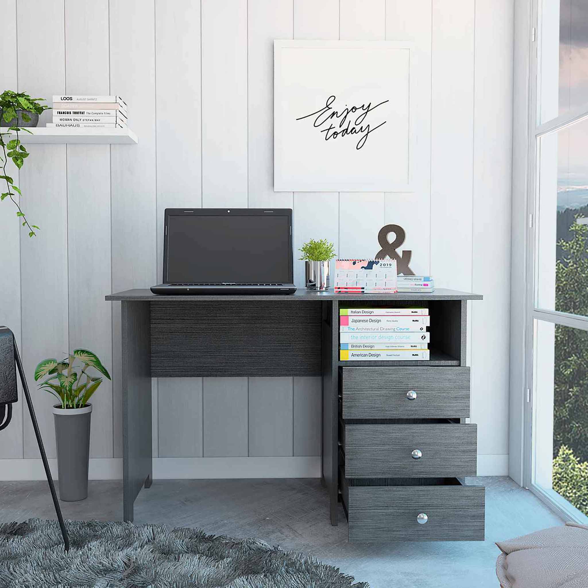 - Storage Options: Three spacious drawers and an open shelf for storing documents, books, or décor