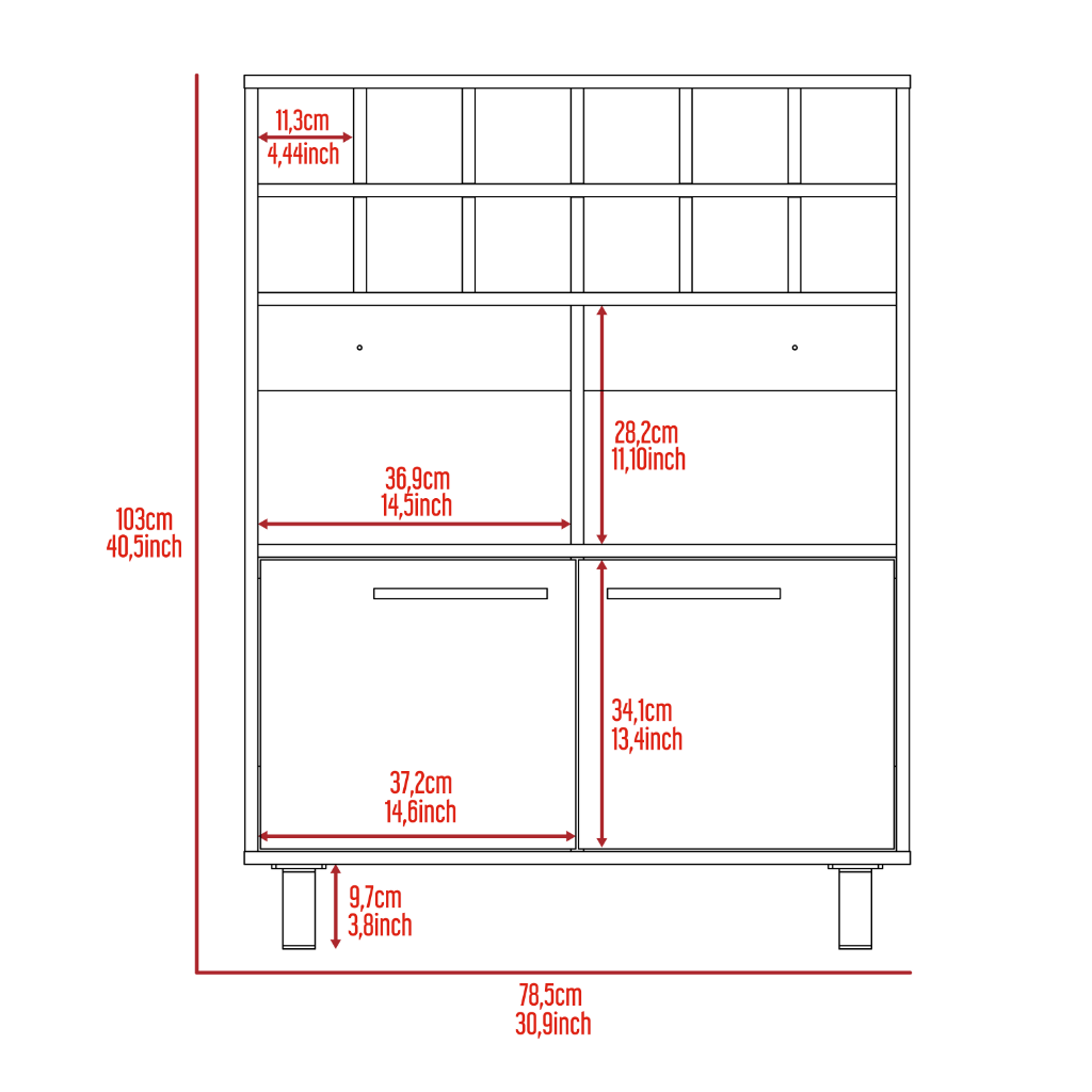 - Cabinets: Two cabinets (14.6″W X 13.4″H)