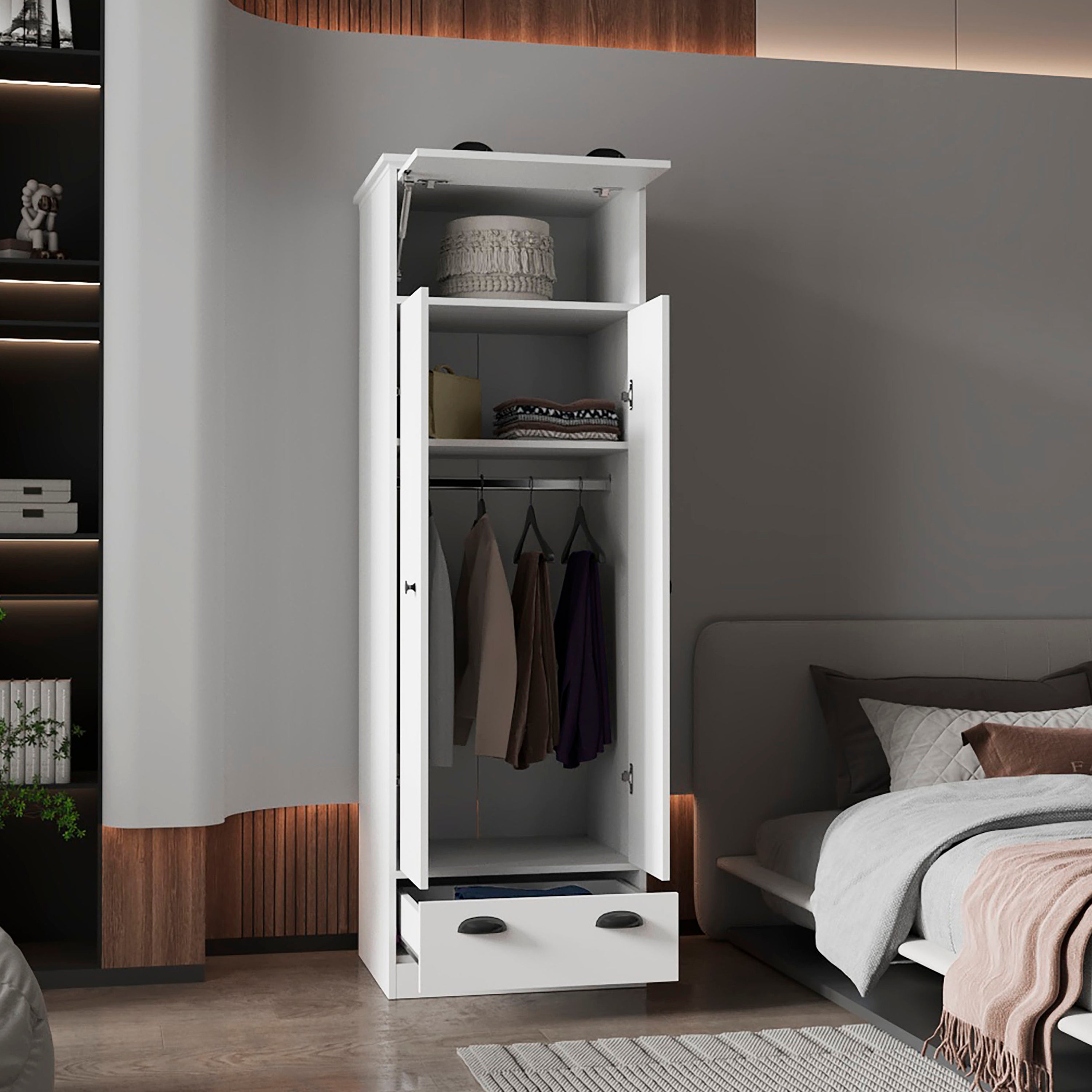 - Double-Door Cabinet: Comes with an interior hanging rod to keep your clothes wrinkle-free