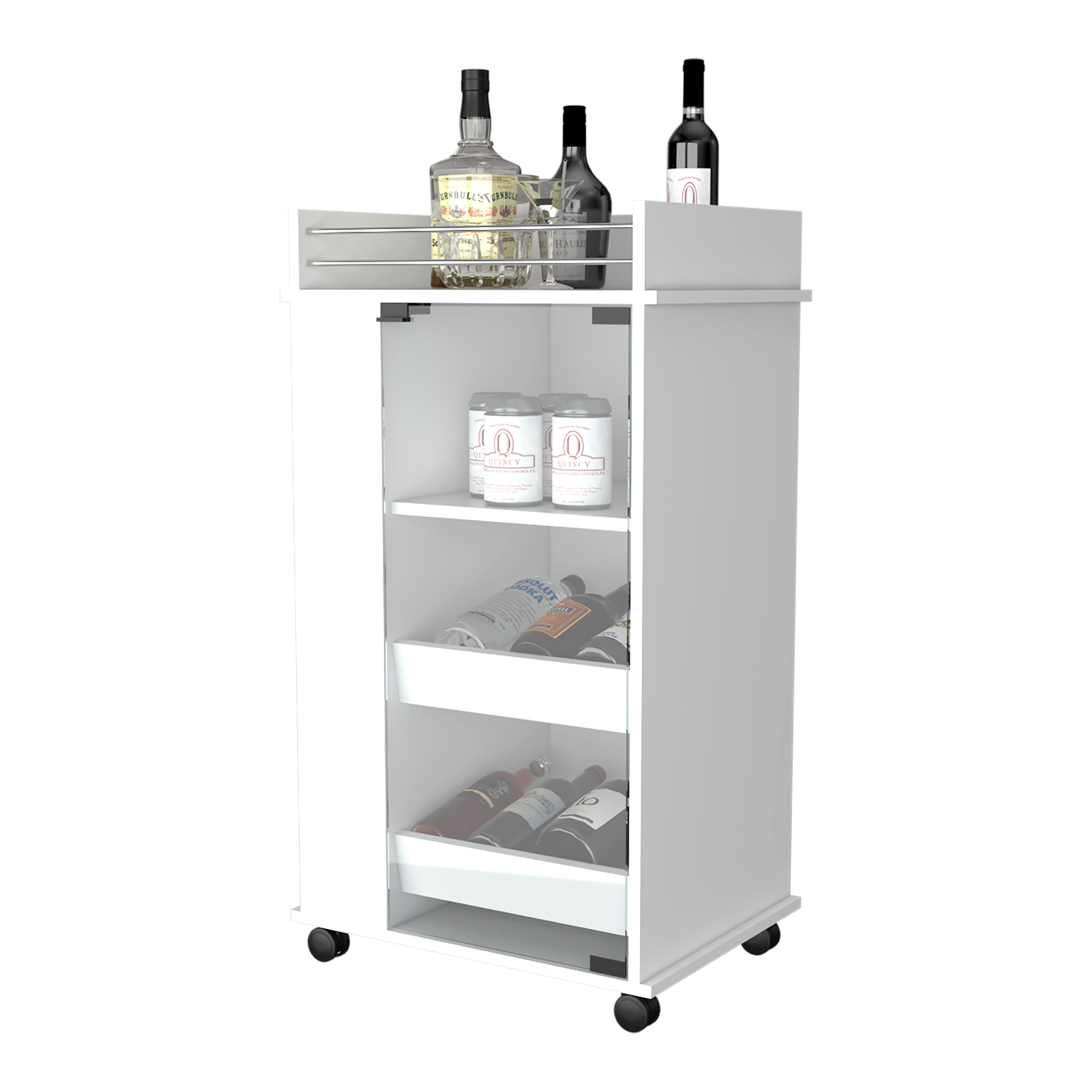 - Two Roomy Side Shelves: Offer extra storage for spirits, glassware, and accessories