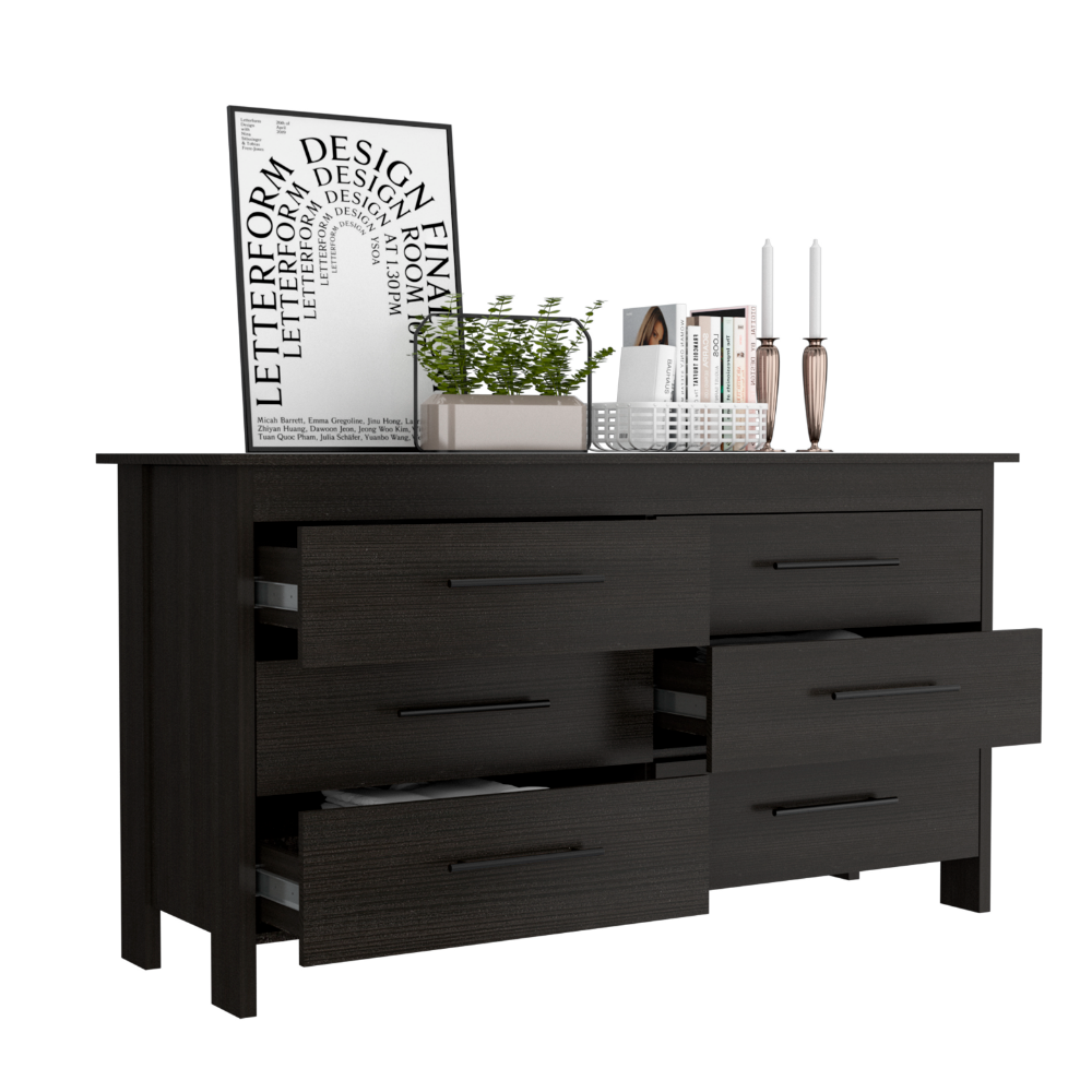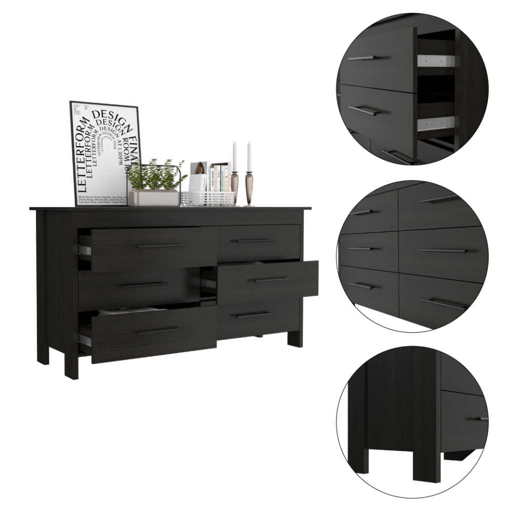 This dresser is ideal for bedrooms and guest rooms. It can be used to clothes, linens, and other personal items. The top table is great for displaying decorative items or placing a flat – screen TV.