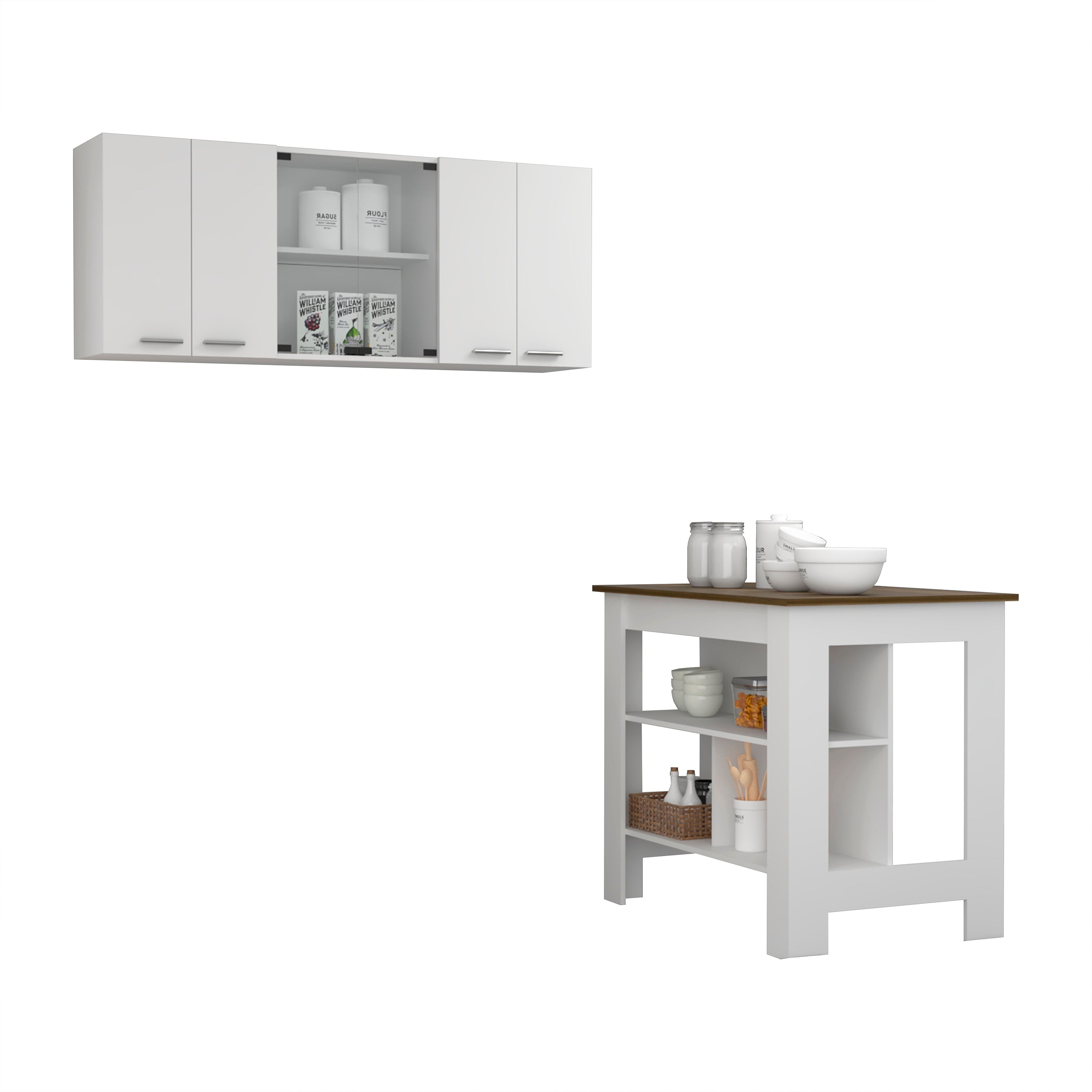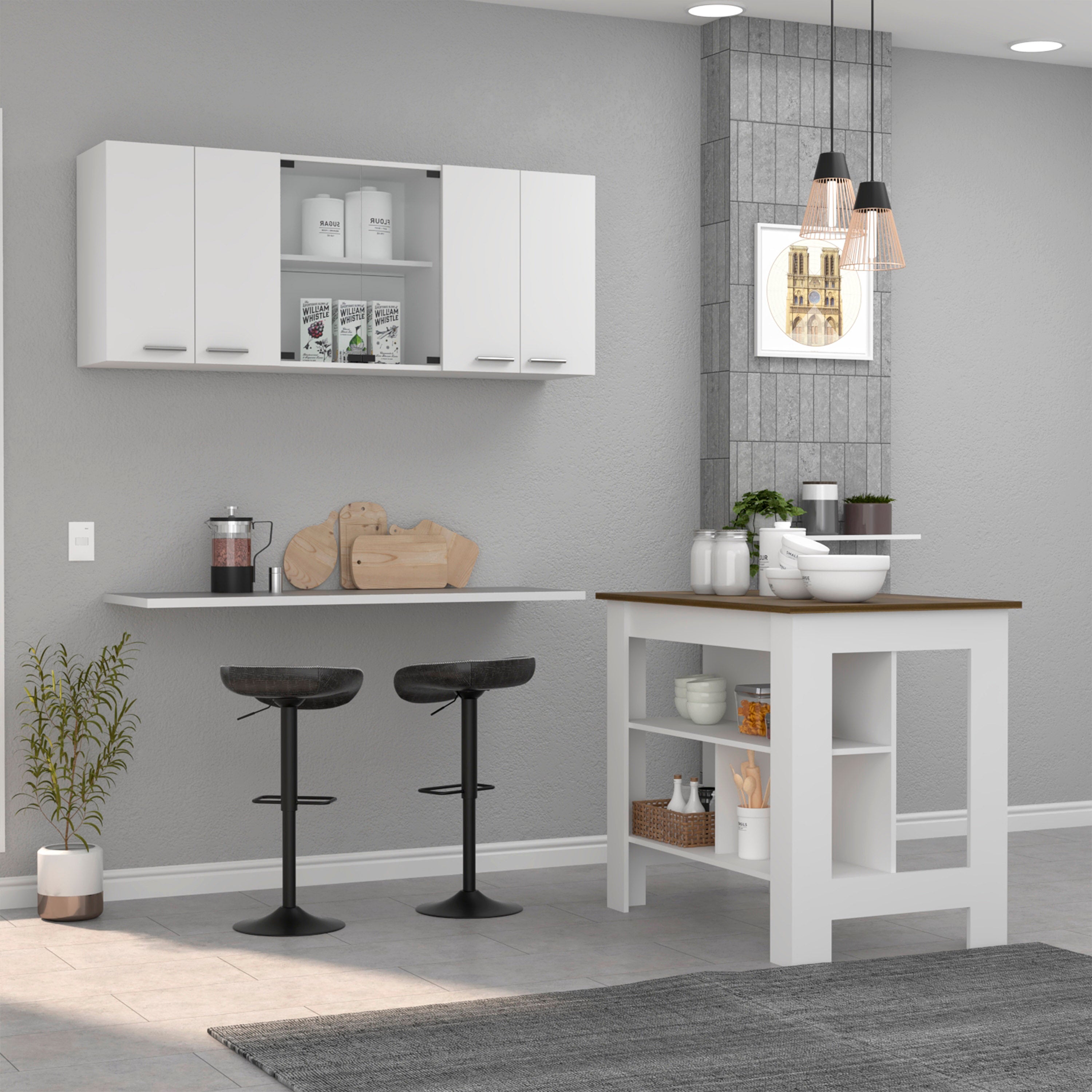 - Spacious Shelves: Three lower shelves in the island and internal shelves in the wall cabinet for storage