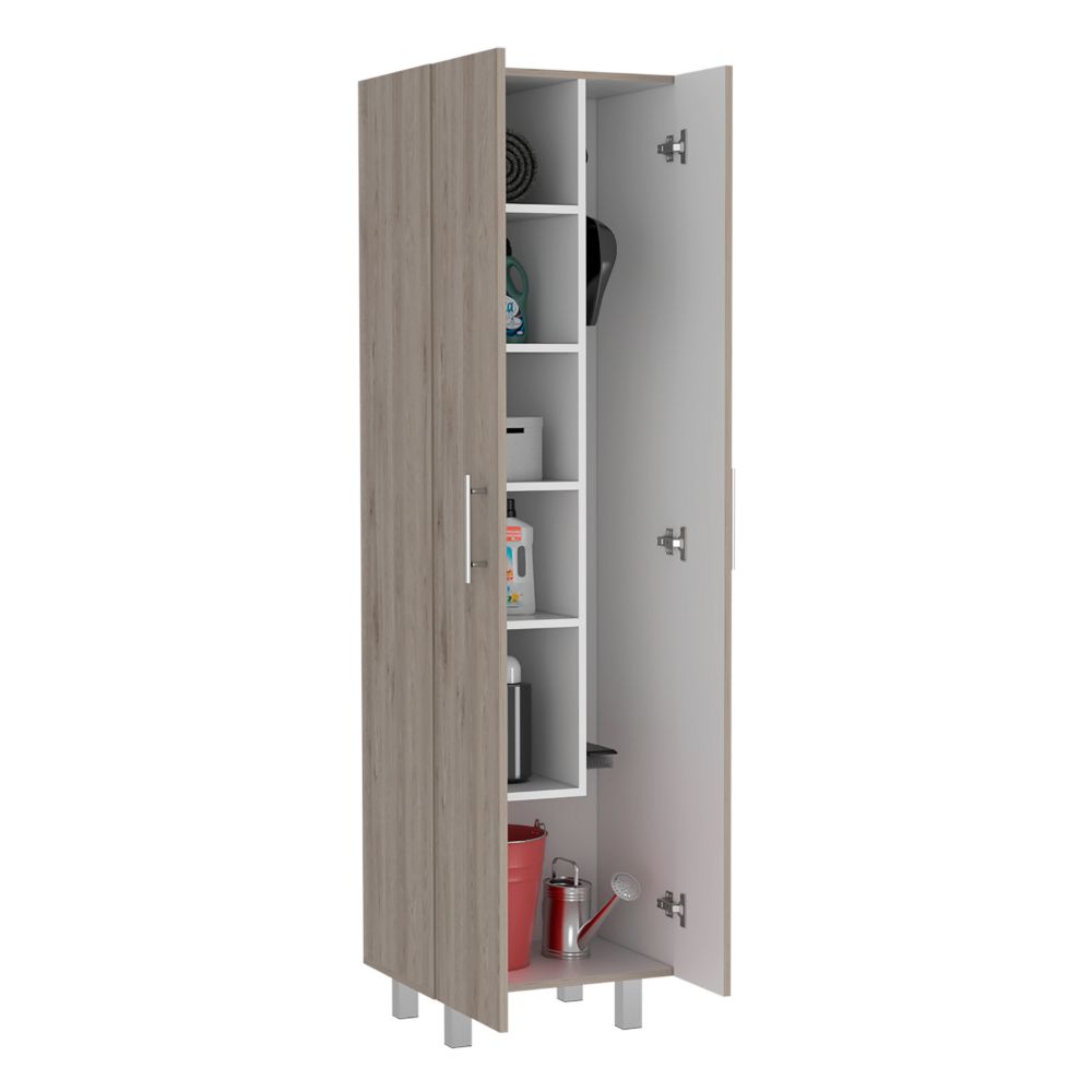This storage cabinet is perfect for storing kitchen accessories, cleaning supplies, toiletries, and laundry essentials in utility or laundry rooms. It can also be used in small spaces to maximize vertical storage.