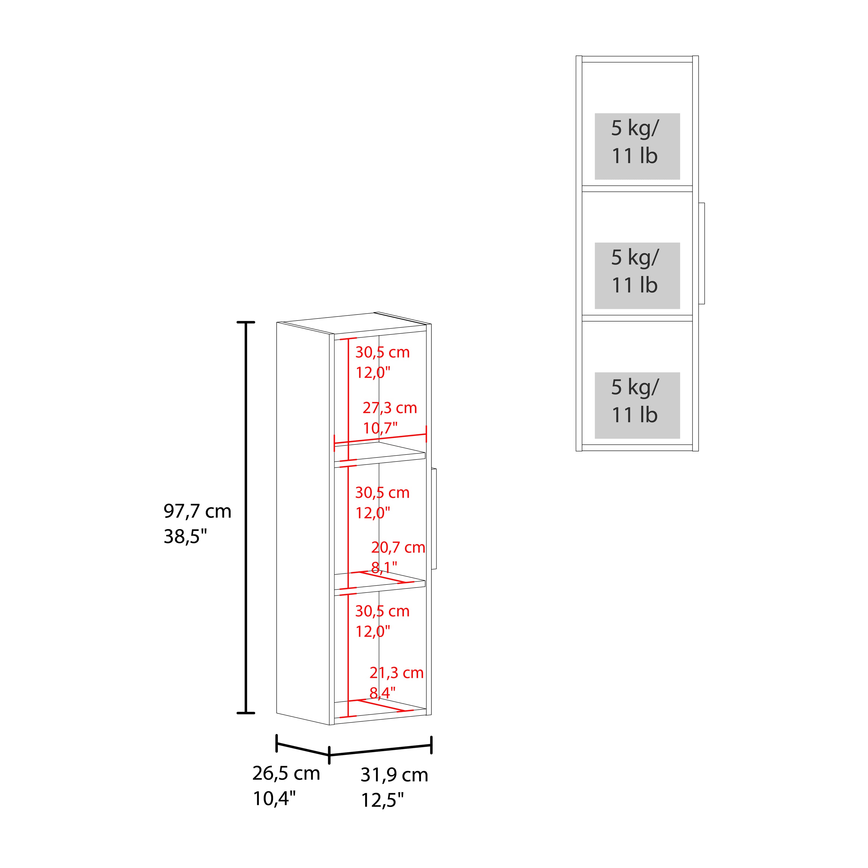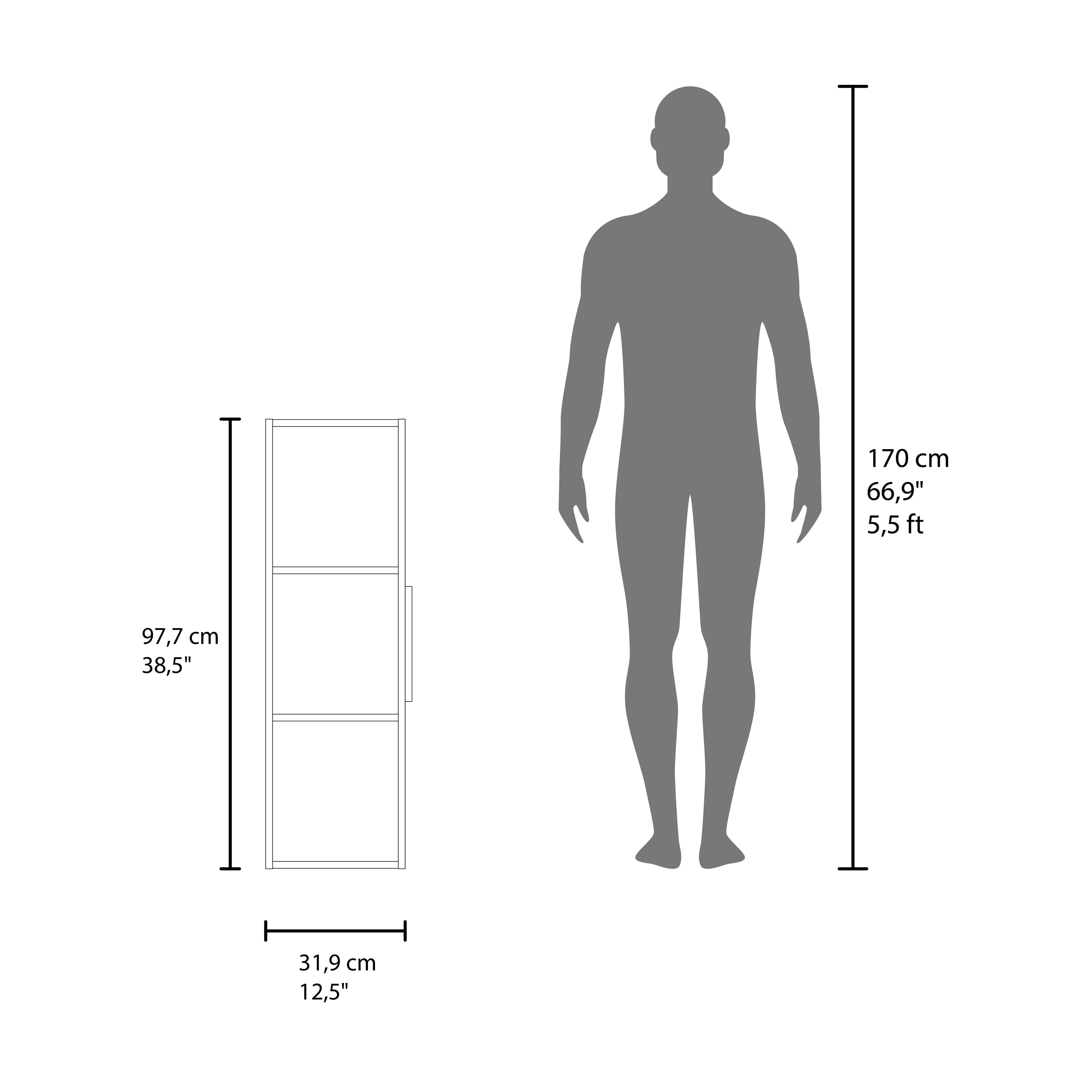 - Dimensions: Height of 38.46”, Width of 12.56”, Depth of 10.43”