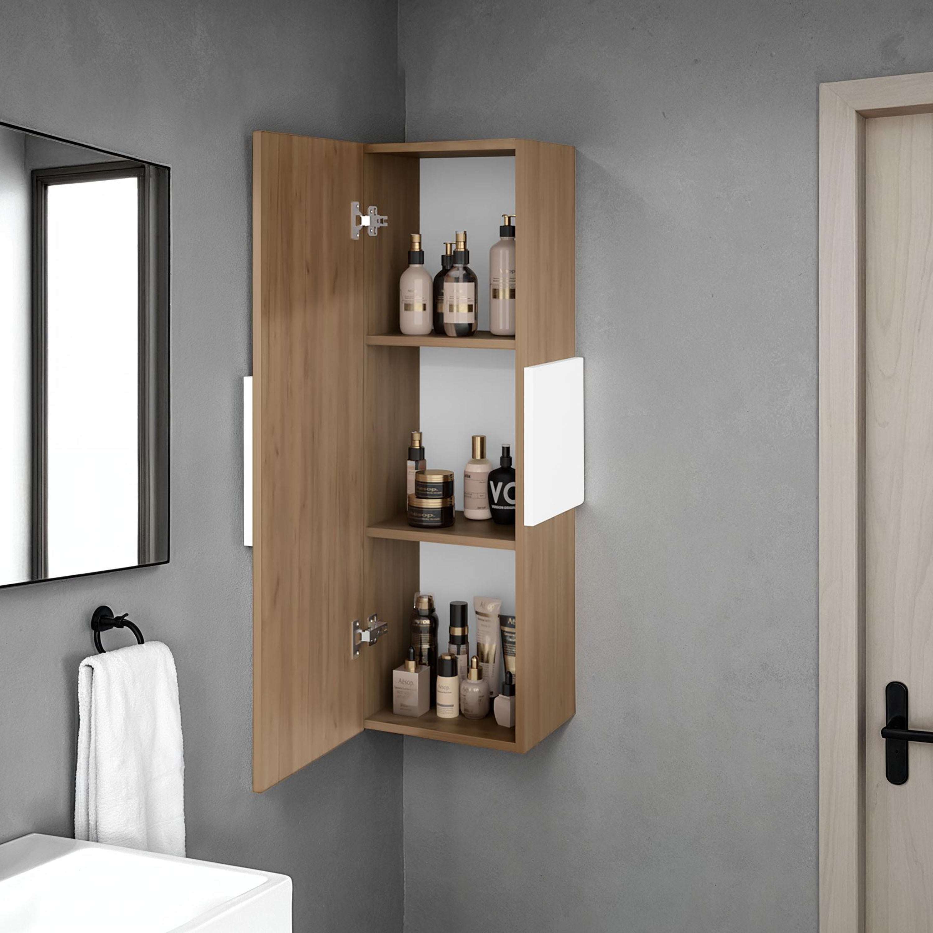 This cabinet is perfect for organizing toiletries, skincare products, and other bathroom essentials in small bathrooms or tight corners. It helps keep the bathroom tidy and clutter – free.