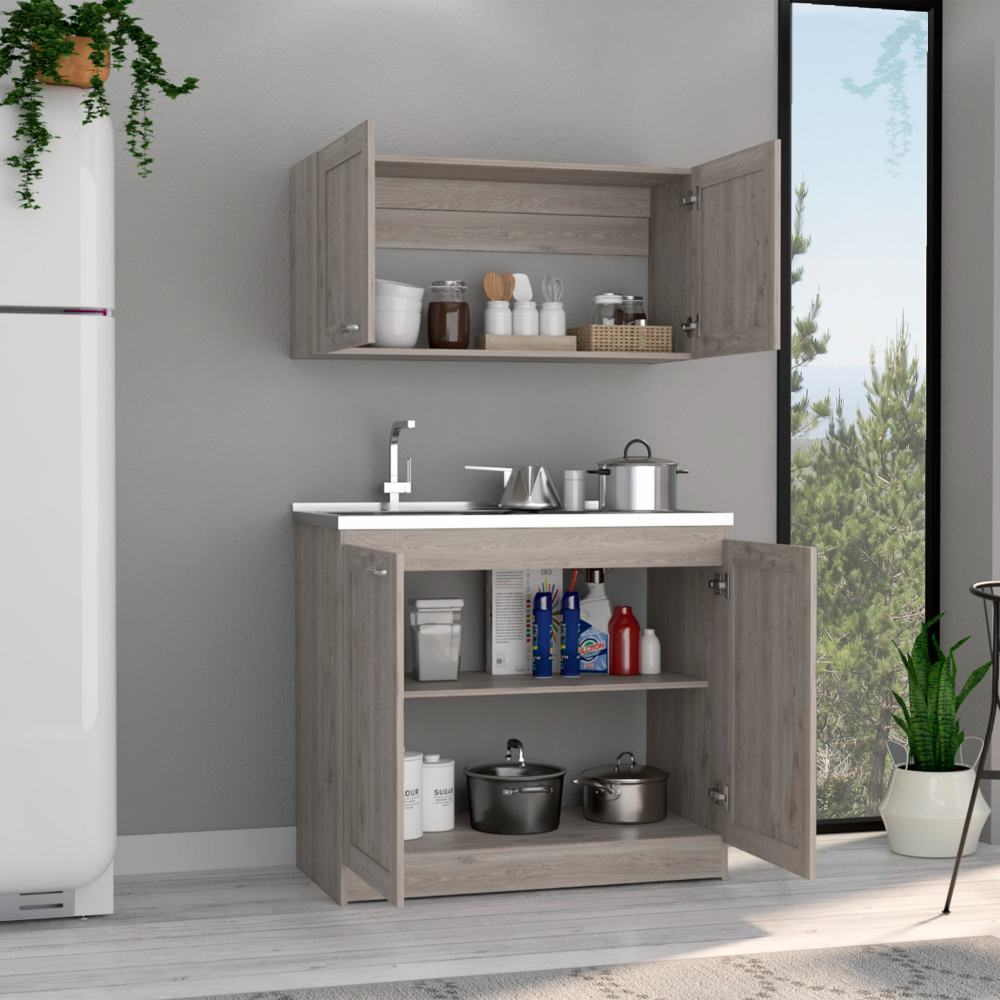 Transform your kitchen with this high – quality cabinet set. It offers ample storage space to keep all your kitchen essentials organized. The two – part design provides a unique and functional addition to any kitchen.