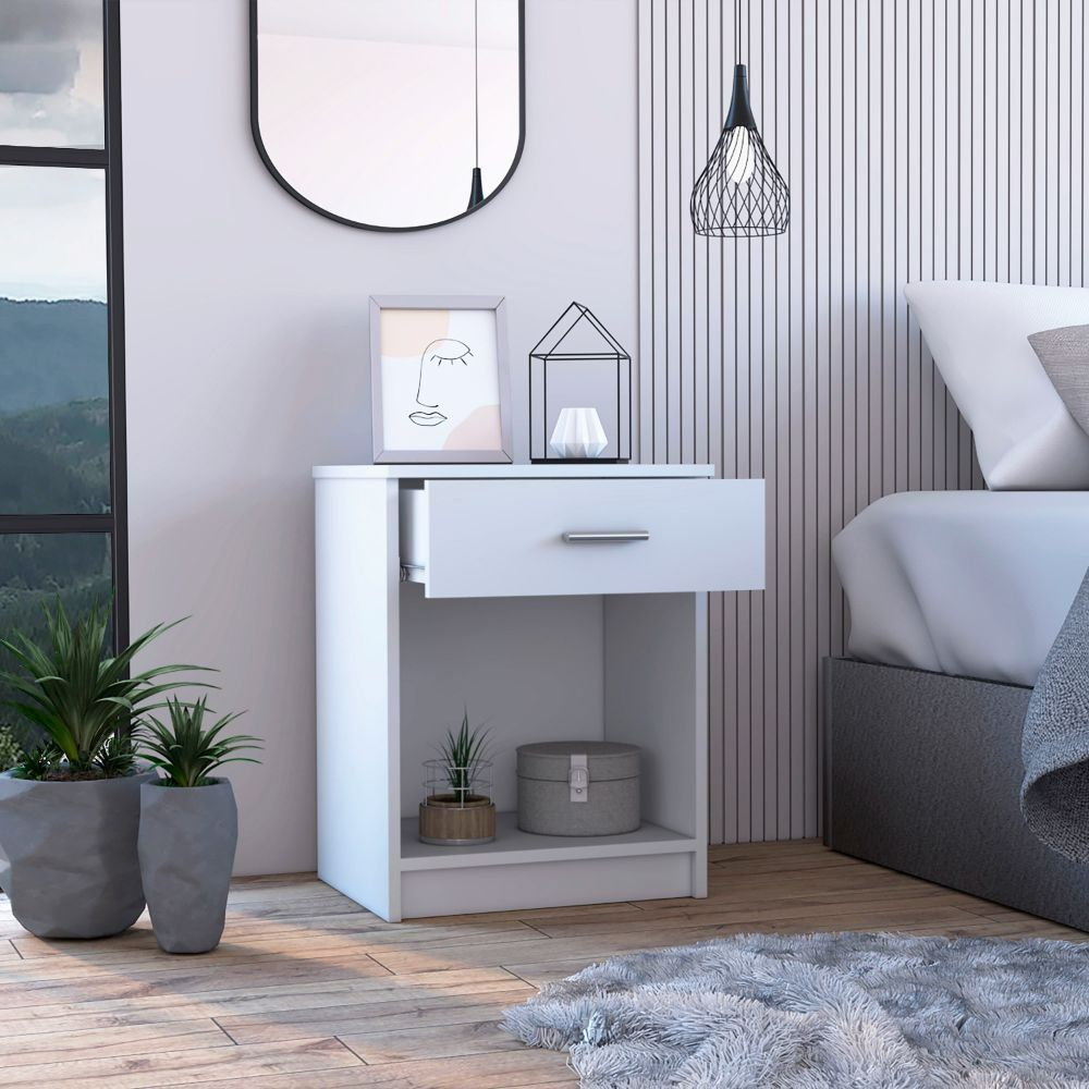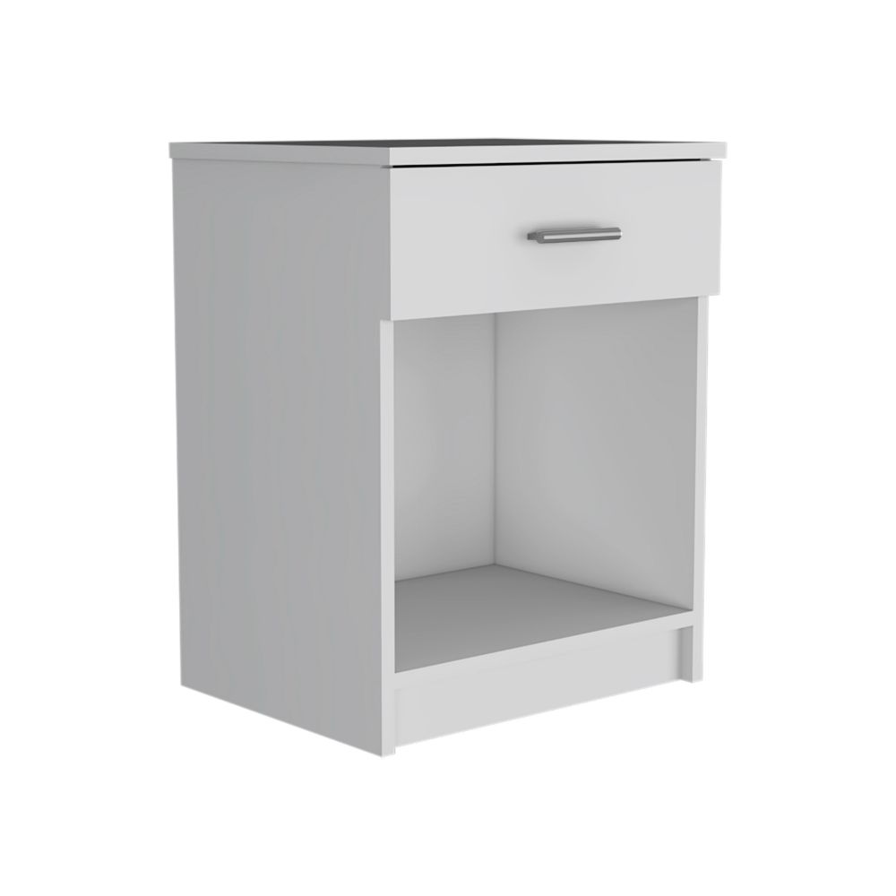 - Drawer: A single drawer with a metallic handle and a smooth slide – out mechanism