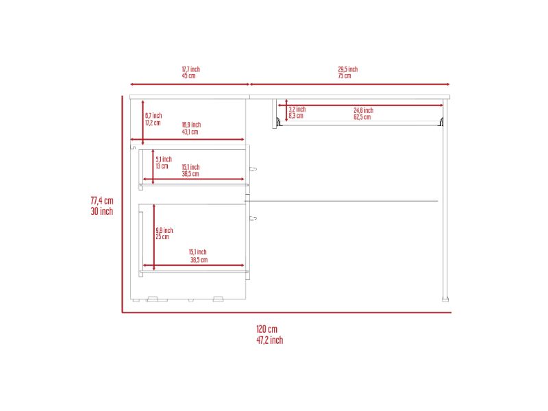 - Storage Drawers: One top drawer (5.1″ H) and one bottom drawer for filling (9.8″ H)
