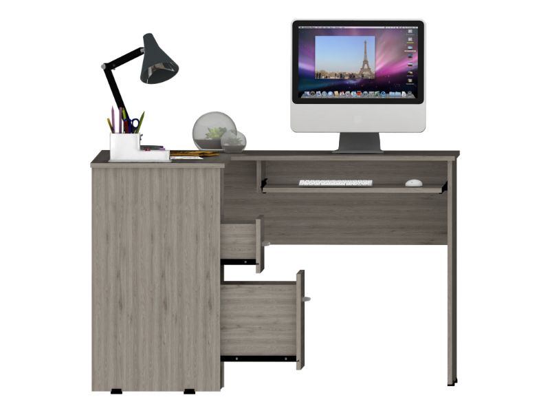 This desk is perfect for home offices, small workspaces, and anyone in need of a functional and stylish desk with integrated storage. It can be used for tasks such as computer work, studying, or general office work.