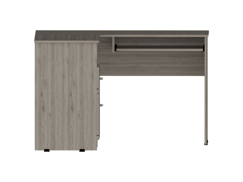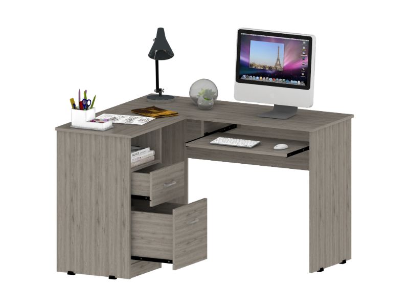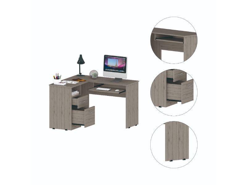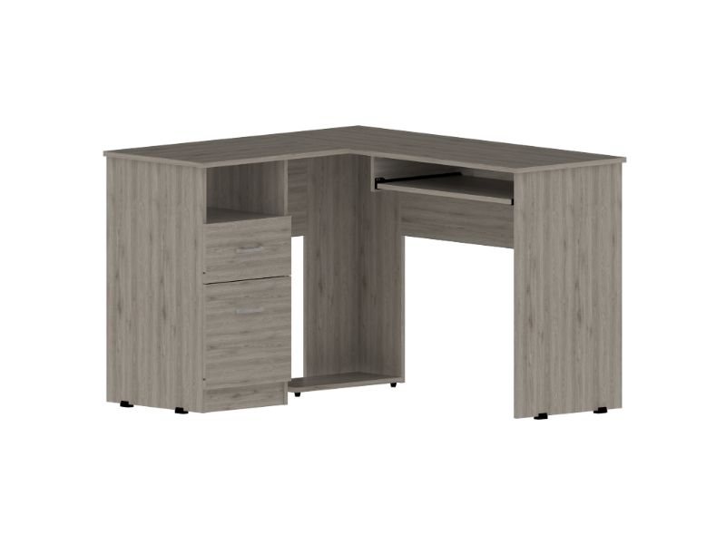 This modern L-shaped office desk is a great addition to any workspace. It offers ample storage for accessories and a dedicated space to keep your CPU protected. The sliding keyboard shelf adds to its functionality, making it a practical choice for home offices and compact work areas.
