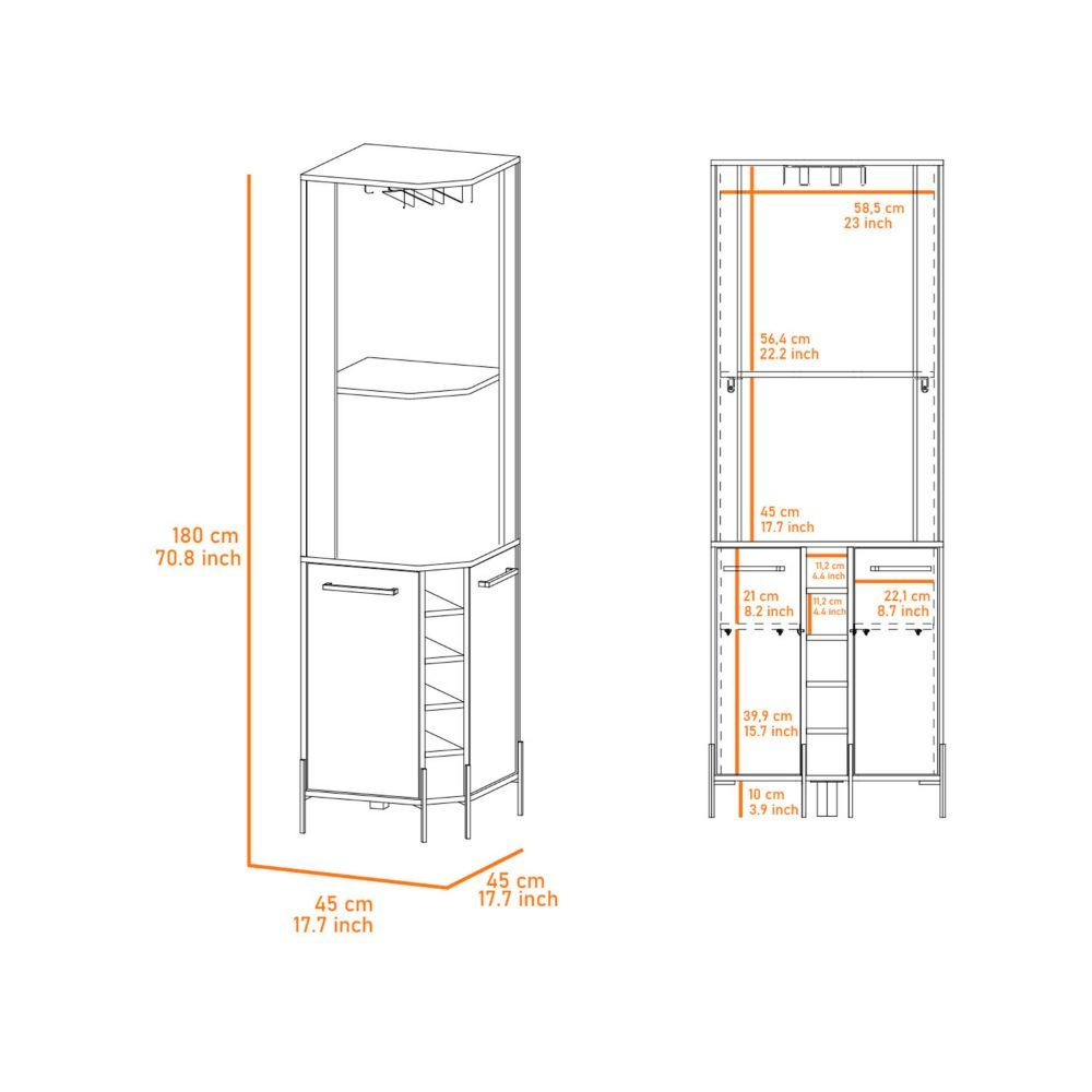 Ideal for kitchens, dining areas, or home bars. It maximizes vertical and corner space, making it perfect for storing barware, bottles, and glasses.