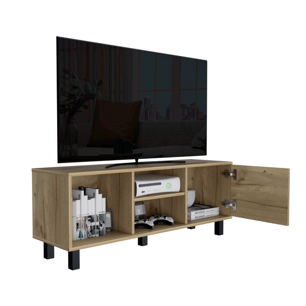 This modern TV stand is a versatile addition to any living or media room. It offers ample storage space and a sleek design, making it perfect for organizing media equipment and displaying decorative items while enhancing the overall aesthetic of your space.