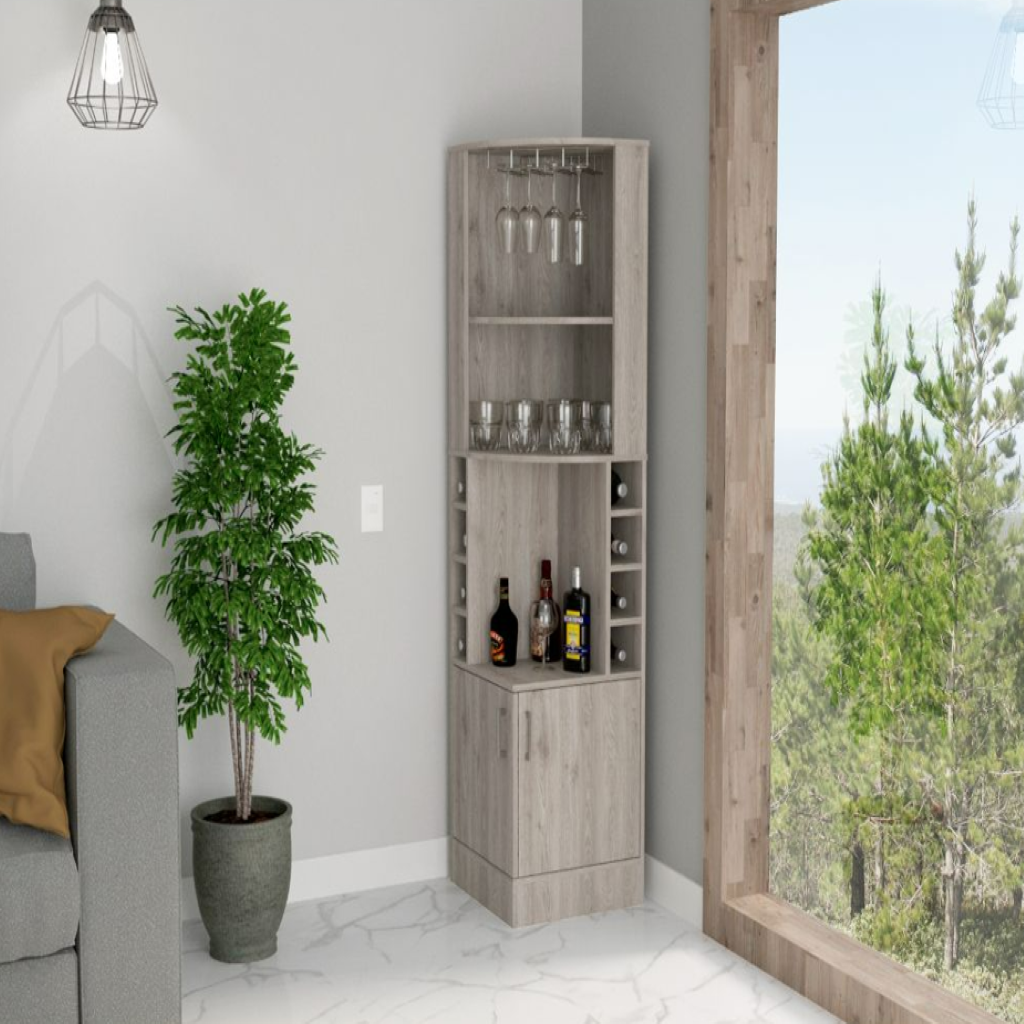 This modern corner bar cabinet is a practical and stylish addition to any home. It offers efficient storage and display solutions, making it perfect for organizing your liquor collection and enhancing the atmosphere of your social spaces.