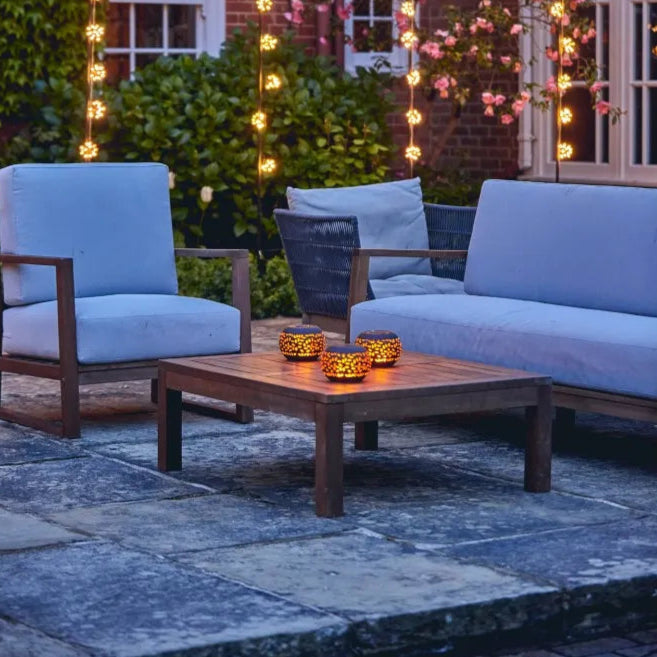 Indoor dining tables, living rooms, event settings, outdoor patios, gardens, and balconies for creating a cozy, festive, or serene ambiance.