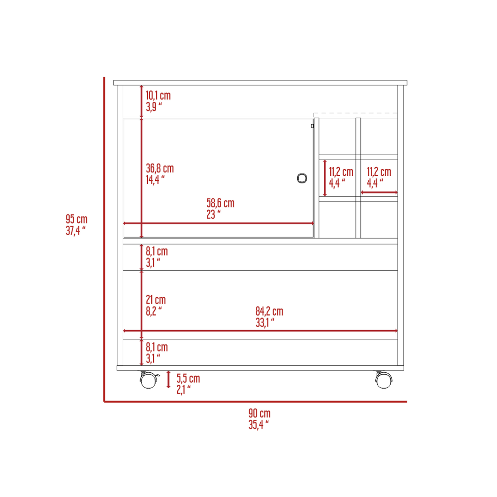 - Main Shelf Dimensions: 33.1” W x 8.2”H