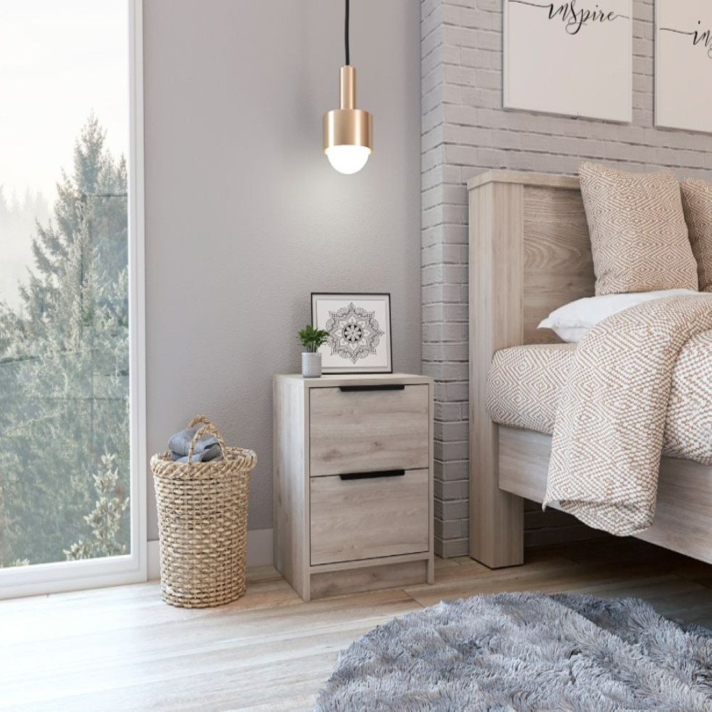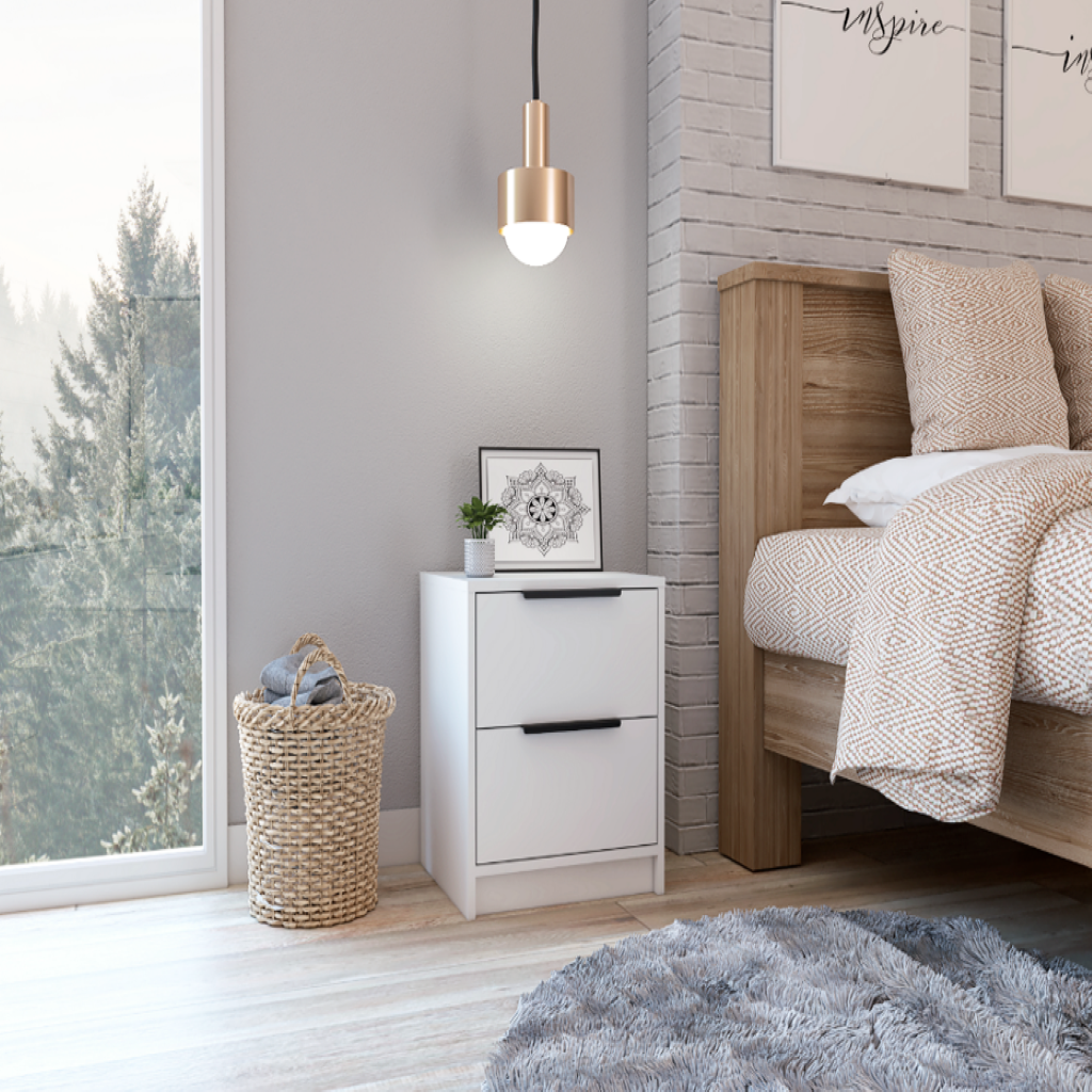 This modern nightstand is a practical and stylish addition to any bedroom. It offers ample storage space with its two drawers and a shelf, and a spacious top surface for placing personal items. The elegant design and high – quality construction ensure it will be a long – lasting piece of furniture.